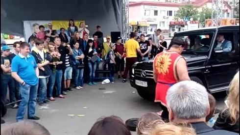 实拍 奔驰G55 AMG 拦腰压过大力士