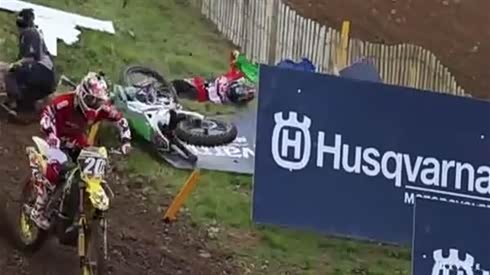 实拍:真是猪队友 摩托比赛队友从天而降砸惨骑手...