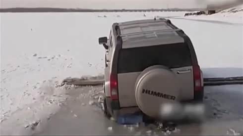 实拍:倒霉悍马男 驾驶悍马在冰面行驶坠冰窟