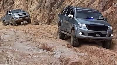 艰难前行!国外实拍多辆皮卡越野爬坡