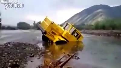 水陆两栖!实拍超牛俄罗斯工程车过河