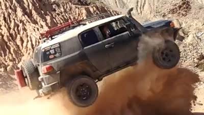完美的动作 车友驾驶FJ酷路泽飞坡瞬间