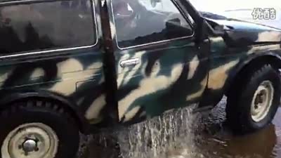 马失前蹄 钢管越野车湿滑坡道断前轮