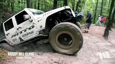 毫不费力!改装牧马人凶猛爬上大泥坡
