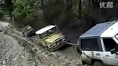力大无穷 爆强日产途乐拖拽2车出泥潭