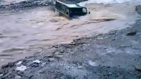 还是太自信 越野车勇闯洪水惨被冲翻