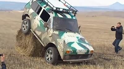 屎壳郎的化身?车友开越野车倒骑大草球
