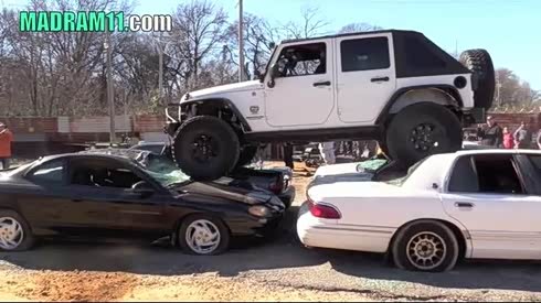 勇猛悍将 改装越野车与钢管车碾压轿车