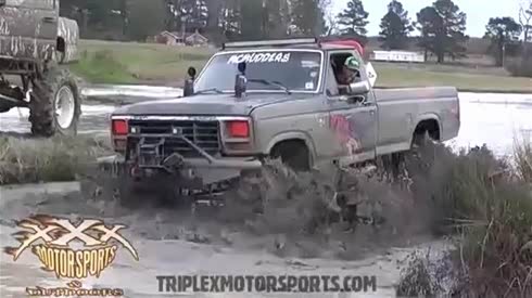 升高大脚的改装皮卡车 水坑中疯狂刨坑