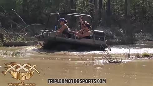 美女玩的欢 开迷你6轮越野车泥塘豁车