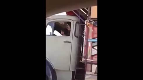 吓死宝宝了 几岁小毛孩驾大卡车狂飙