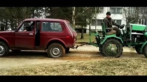 战斗民族真会玩 拖拉机和越野车玩拔河