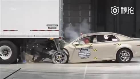 后果很是恐怖 轿车追尾大货车碰撞测试