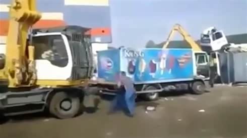 监控实拍:跟挖掘机司机斗气 货车彻底杯具了...
