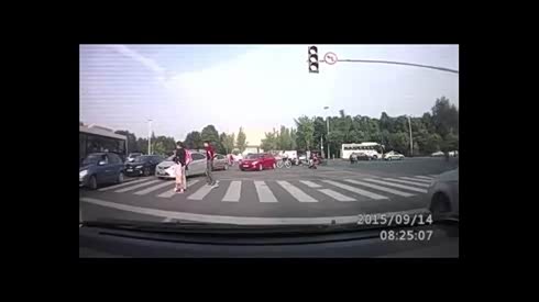 监控实拍:小车闯红灯 毁灭性的撞击 惊天动地...