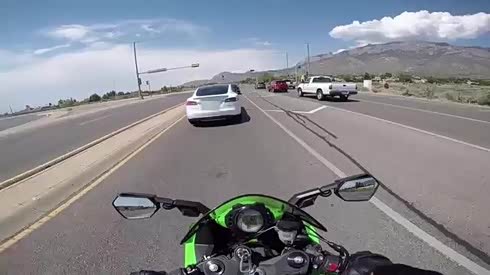 瞬间就败了 川崎ZX-10R挑战两辆特斯拉