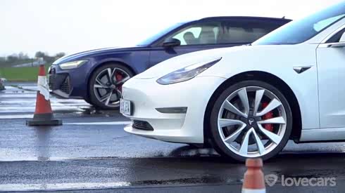 特斯拉model 3 直线竞速奥迪RS 6