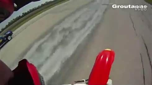 摩托车吓趴 摄像车行驶途中突然转弯