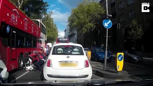 难逃一劫 公交车为躲摩托撞倒对向来车