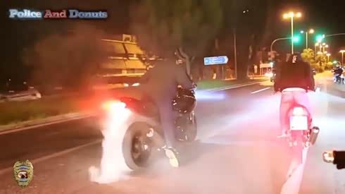 翘头烧胎 骑士驾驶摩托深夜大炫车技