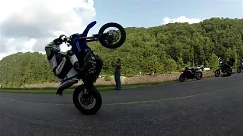 摔得真够疼 摩托车翘轮表演惨烈失败