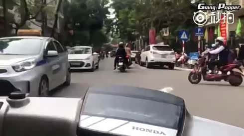 出事就后悔 踏板摩托闹市中疯狂钻缝