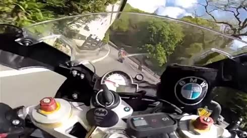 山路飙车太危险 宝马摩托撞墙险遭碾压