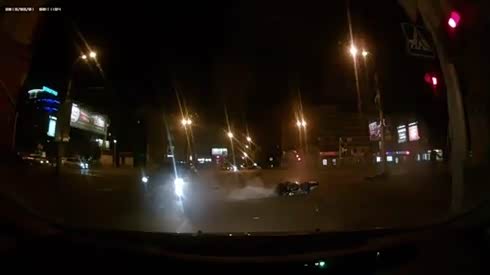 想往哪骑啊 轿车拐弯挂倒后侧摩托车