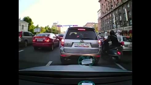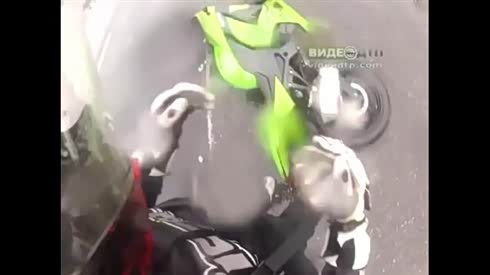 摔惨了 摩托车压线骑行遭遇轿车变道