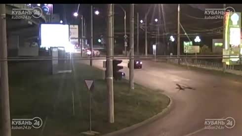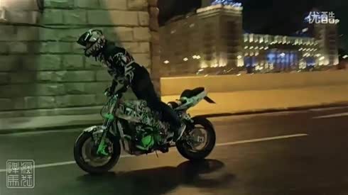 特技耍不停 俄罗斯摩托车党深夜炸街