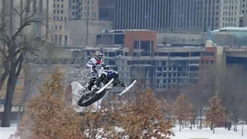 也真是拼了 车友驾雪地摩托车狂野互飙