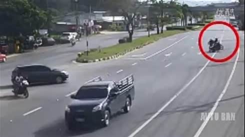 一慌就出事 实拍美女试骑摩托不幸惨撞