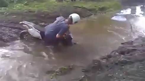 摩托车比赛 遭遇坑爹的河沟...