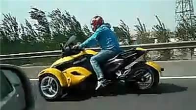 唐港高速惊现前二轮后一轮的怪胎摩托