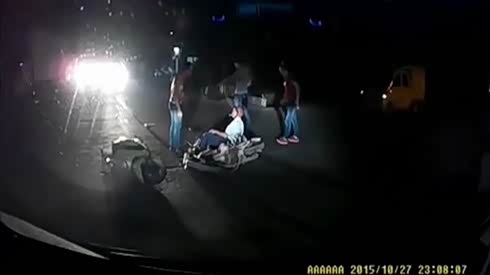 笑死了!全身武装摩托车手闯红灯被出租车制服