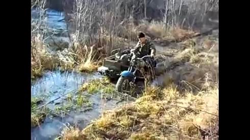 酷毙了!摩托车水中翘头飞驰!