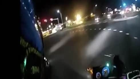实拍 警察追击飙车党的雅马哈R1 被玩惨