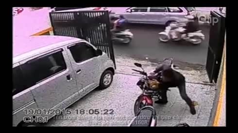 监控记录 看窃贼偷摩托车的嚣张一幕