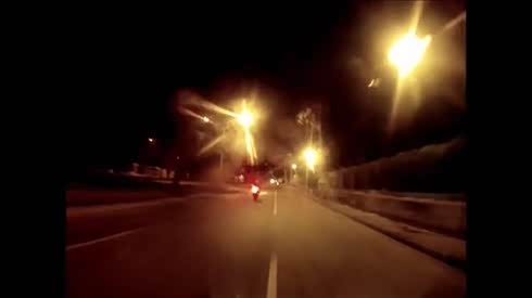 实拍 摩托车玩命闯红灯 不惜钻到货车轮下