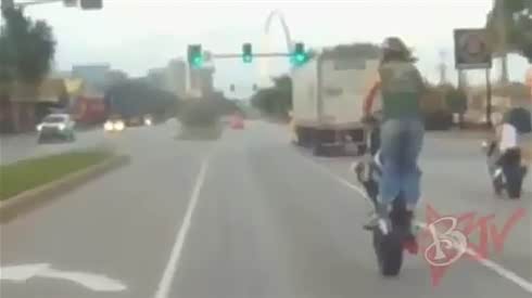 闹市公路骑摩托玩杂耍 就是这个下场