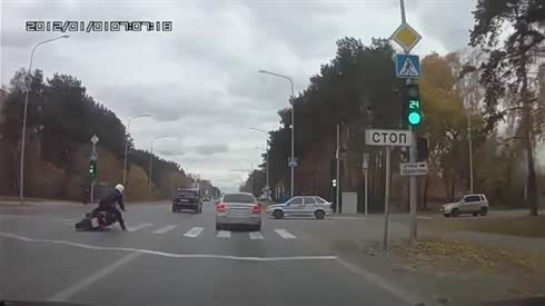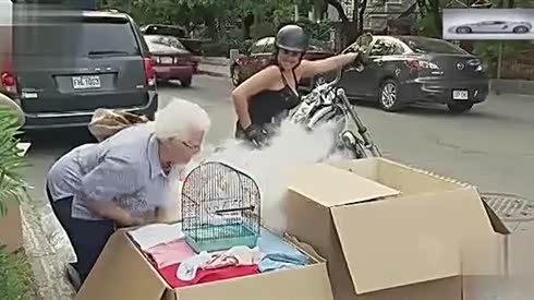 哈雷妹子街头恶作剧 摩托车尾气熏死鸟儿