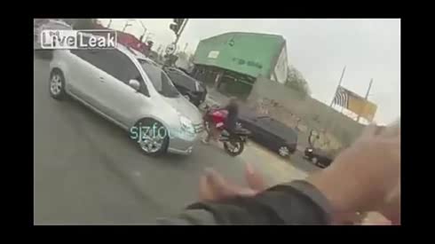 实拍 俩摩托别车不爽 掏枪就开 吓尿了