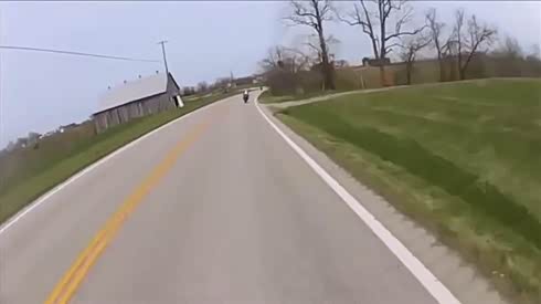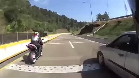 实拍重型摩托车高速山路劈弯失误 重撞水泥护栏 悲惨后果