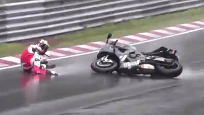 雨天路滑 宝马S1000RR纽北赛道侧滑