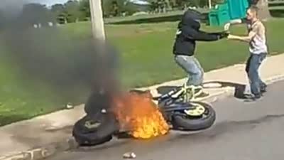真是乐极生悲 摩友公路耍花样不幸摔车