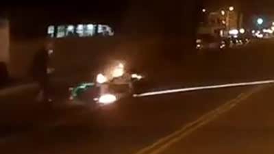 这么作干嘛 摩托车友超高速摔车起火