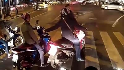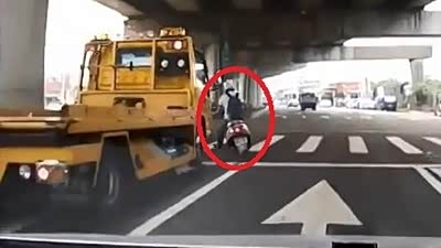 可长点心吧 摩托车友鲁莽转弯遭撞击
