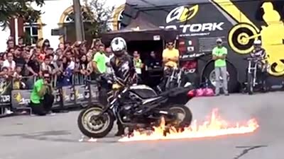 这才叫烧胎 摩托车手疯狂烧胎与特技