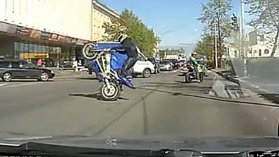 莫名的忧伤 实拍摩托车平地骑行竟摔倒