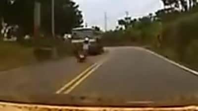 胳膊拧不过大腿 SUV山路连撞三辆摩托